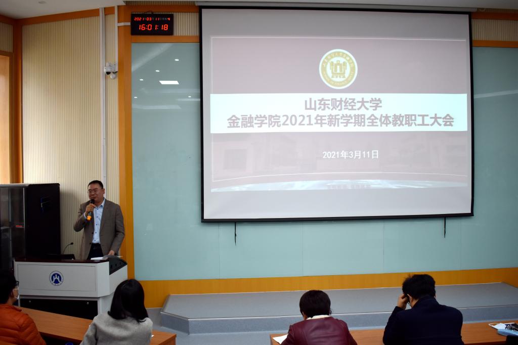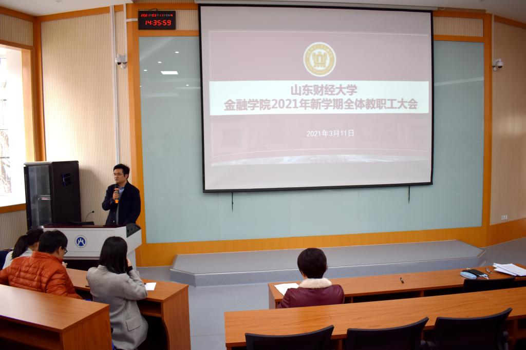 彭红枫总结了过去一年学院在教学、科研、学科评估、社会服务和行政服务等方面工作取得的成绩和存在的不足,提出了今年的工作目标和思路:教学方面,一是重点发动师生积极参与课程思政建设,形成学院特色;二是总结金融学、金融工程成为全国一流专业和5门课程成为全国优秀课程的申报经验,评估现有其他的专业和课程申报可行性,做好本年度一流专业和一流课程的申报准备工作;三是做好重点教材申报准备工作;四是学习其他学校和学院先进经验和做法,以团队建设为依托,培育优秀的教学研究成果;五是探索研究生课程优化工作,逐步淘汰一些不符合当前需求的课程。科研方面,一是继续开展国家两金和教育部项目的申报辅导;二是做好学院标志性研究成果的培育,在实现量的突破基础上,进一步实现质的提升;三是整合各项资源,优化科研平台;四是培育有学院特色的学生科研平台,建立学生科研交流渠道。三全育人方面,一是建立健全三全育人的制度体系;二是要努力形成三全育人项目标志性的成果;三是强化和拓宽三全育人宣传平台和渠道,宣传和总结推广学院三全育人的特色及典型案例;四是利用召开研讨会和座谈交流等方式与国内其他高校进行学习交流,展示我院三全育人取得的成果,呈现三全育人工作全貌。另外,他还对学院社会服务、校友工作等进行了布置。