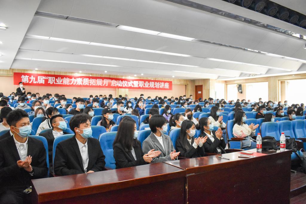 首先,范志毅副书记宣布第九届职业能力素质拓展月活动正式开始,并向同学们详细介绍了学校举办职业能力素质拓展月系列活动的目标和定位,希望同学们可以借此机会做好自己的职业生涯规划,选择适合自己的职业发展道路。在座的同学们反应热烈、情绪高涨。
