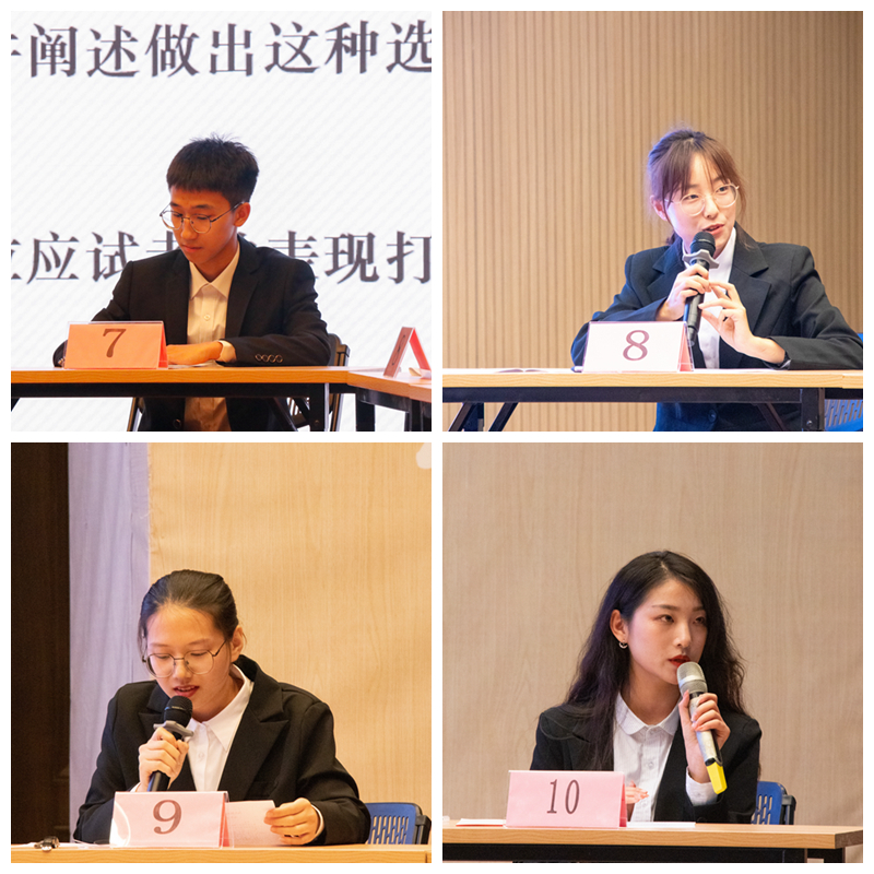 首先,活动现场播放第九届职业能力素质拓展月掠影,带领大家共同回顾了第九届职业能力素质拓展月的精彩瞬间。决赛过程中,来自全校的10位选手分别进行了个人陈述、小组讨论、代表总结三个环节。选手们的语言表达能力、随机应变能力、娴熟的处理方式和较强的团队协作意识赢得了现场评委和观众们的一致好评。最终,海角app 2019级金融学2班宋晓宇获得一等奖;海角app 2018级金融工程4班王祥、管理科学与工程学院2019级信息管理与信息系统(大数据与商务分析)卓越班付伊杰获得二等奖,经济学院2019级经济学4班刘雪丽、公共管理学院2020级公共管理类4班姜泽伍,海角app 2020级金融学类1班李墨白获得三等奖。评委李洪升、柏宝春等分别对选手们的场上表现、解题思路及讨论技巧进行了精彩点评。