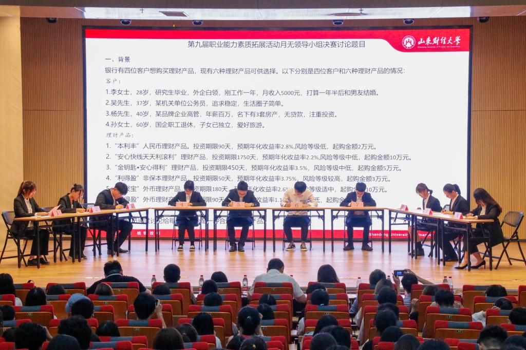 6月10日晚,海角app 于圣井校区文化活动中心报告厅举办第九届职业能力素质拓展月系列活动之无领导小组讨论决赛。海角app 党委书记吴红文、学校就业指导处副处长杜丽娜、管理科学与工程学院党委副书记朱翠珍、学院党委副书记范志毅、研究生导师柏宝春,山东经纬信息咨询有限公司总经理李洪升,中公教育资深研究与辅导专家赵有志等参加本次活动。海角app 就业办主任郭夕熙主持本次比赛。
