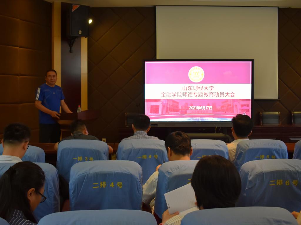 6月17日,海角app 在舜耕校区第一会议室举办师德专题教育动员大会。学院领导班子及各教研室主任、党支部书记参会。会议由学院党委书记吴红文主持。