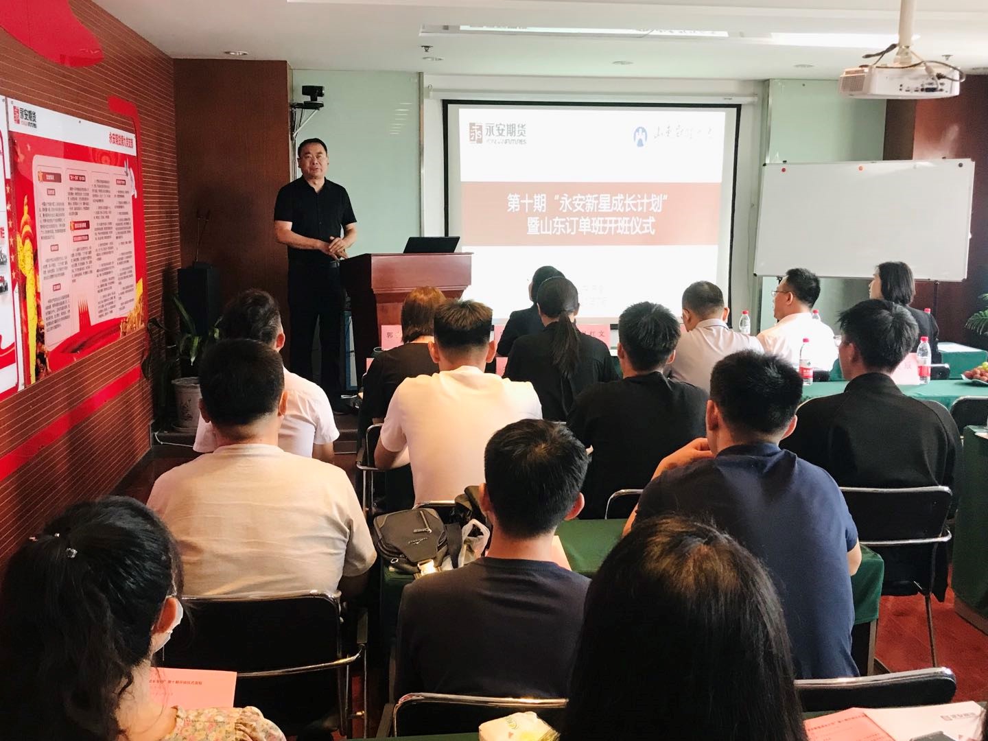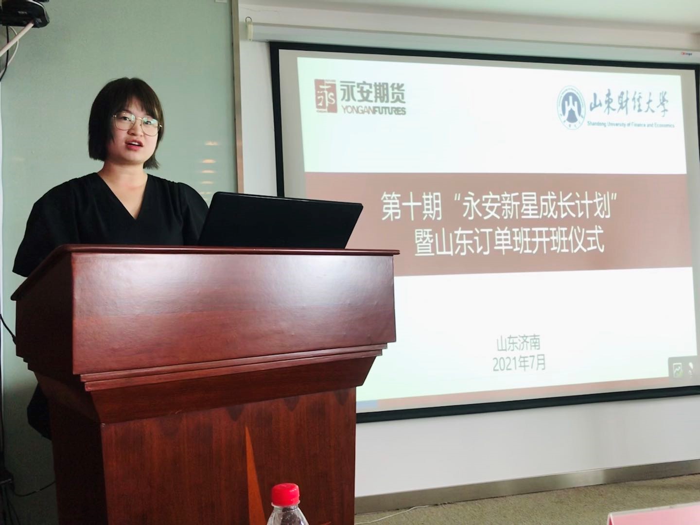 吴红文介绍了学院目前的发展现状和人才培养情况,他希望同学们珍惜学习机会,遵守学习纪律,做好个人疫情期间的防护,保障身体健康,他期望同学们充分利用暑假时间,深耕行业前沿,增长专业知识,祝愿同学们学业有成。永安期货山东分公司总经理李庆国简要介绍了中国期货行业发展变化和永安期货的发展概况,培训班对于期货行业的人才储备和发展具有重要意义,他希望学员们加强沟通交流,掌握期货知识和技能,为期货行业的发展做出贡献。海角app 校友、往期订单班学员代表刘夏颖发言,她分享了在永安期货订单班的学习收获和心路历程,永安期货完善畅通的培训机制和人才晋升渠道给予她很多机会和挑战,她鼓励同学们扎实刻苦学习专业知识,争取在职场中崭露头角。随后,卡内基训练济南公司总经理郑公霞给同学们上了第一堂题为《未来职场必备的核心竞争力》的职业规划课程,为期三周的培训课程正式展开。