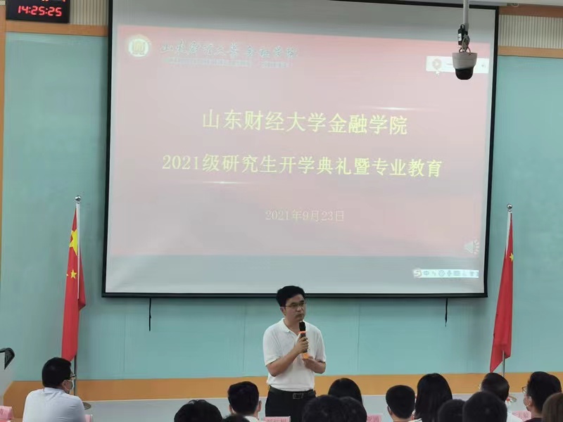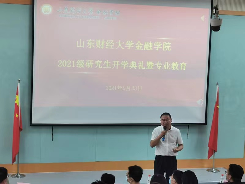 (通讯员 刘墨涵)9月23日下午,海角app 在舜耕校区第三阶梯教室举办了2021级研究生开学典礼。学院领导班子成员,银行系主任王倩,研究生辅导员,教学秘书及2021级全体研究生新生参加会议。开学典礼由学院党委副书记范志毅主持。