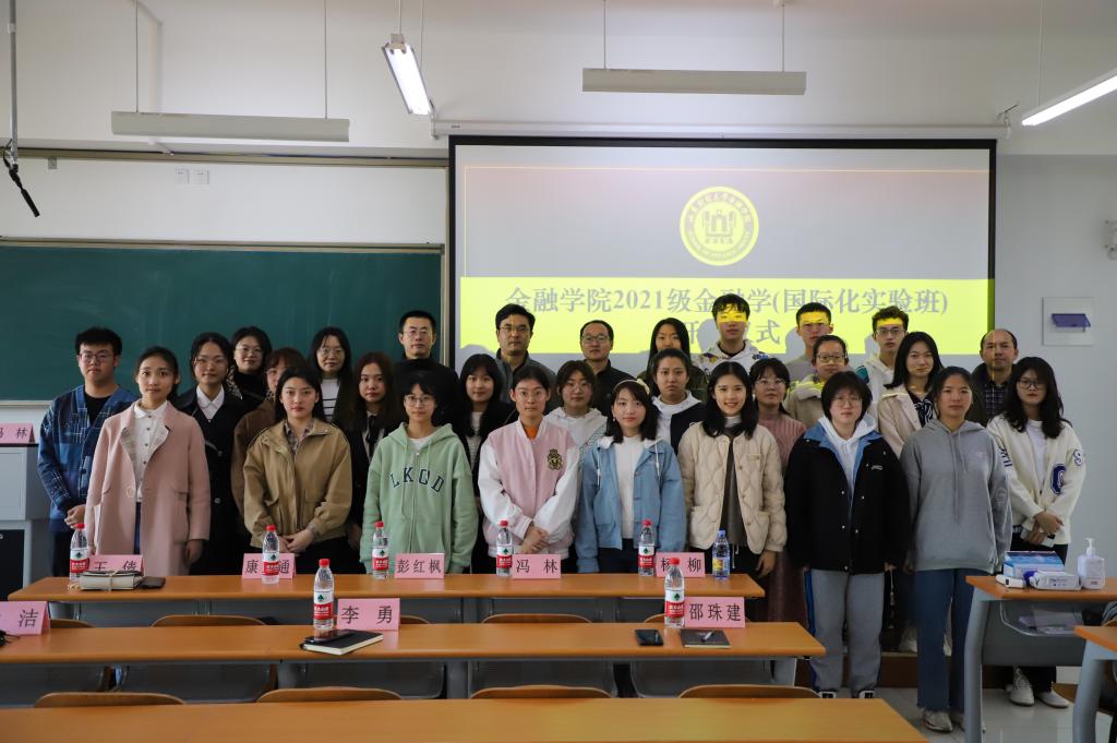 (通讯员:钟慧敏)3月8日,海角app 于圣井校区七号教学楼举办21级金融学国际化实验班开班仪式。院长彭红枫、党委副书记康亚通、副院长冯林、银行系主任王倩、国际金融系副主任杨柳,部分辅导员及实验班全体学生参加了开班仪式。开班仪式由冯林主持。