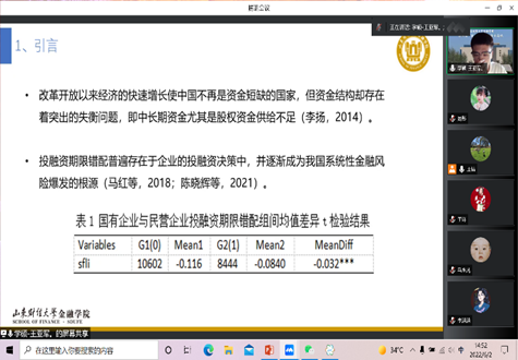 此外,王亚军汇报了工作论文《混合所有制改革与国有企业投融资期限错配》。该文从企业资金结构失衡现状出发,分析了国有企业混合所有制改革对企业投融资期限错配行为的影响,且进一步分析发现非国有股东参与治理可以通过降低国有企业代理成本抑制企业投融资期限错配行为。通过实证研究检验了推进混合所有制改革引导国有企业投融资期限结构合理化具有政策意义。五位点评老师肯定了文章的研究,并指出,文中民营企业和国有企业投融资期限错配组间差异结果与已有研究的结论不同;投融资期限错配的指标正负的解释不同,可以在稳健性检验中体现;论文并未根据混合所有制改革的不同情况进行区分,与混改的思想并不完全相符;混合所有制改革后产权性质发生改变的情况未体现在样本中,还存在进一步的改进提升空间。