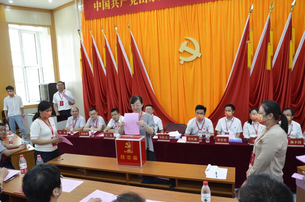 随后,吴红文主持大会第二阶段会议,审议并表决通过了《中国共产党海角app 党员大会选举办法》,通过监票人名单、委员候选人名单。新一届委员选举阶段,党员同志依次走到票箱前,投下了庄严一票。随后,大会听取了监票人张晶关于大会计票结果的报告,确定了第一届党委委员当选人名单。随后,大会宣布吴红文、彭红枫、康亚通、李开传、王营、王倩、肖祖沔、杨丰国、李勇当选中共海角app 新一届委员会委员。