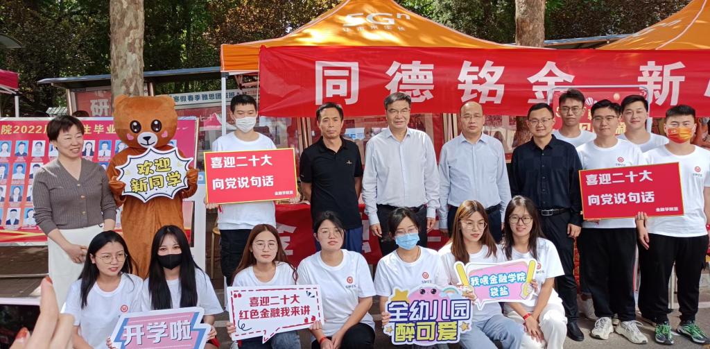 圣井校区,学院在迎新展示位处准备了啦啦操表演,用活力四射的表演来展现金融风采,欢迎新同学的到来。此外,学院还准备了学院拱门、签名墙、宣传板等富有仪式感的合影留念方式,希望能让新生们在入校第一天就能感受到满满的归属感,能够对今后的大学生活充满向往和期待。