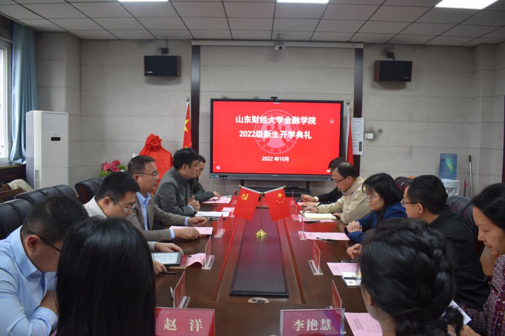 10月6日下午,海角app 在舜耕校区金融楼314会议室采取线上线下相结合的方式举办2022级本科生开学典礼。海角app 党委书记吴红文,院长彭红枫,党委副书记康亚通、李开传,副院长王营、王倩、肖祖沔,工会主席、办公室主任杨丰国,投资系副主任张笑玎及全体辅导员老师、2022级本科新生与会。开学典礼由学院党委副书记康亚通主持。