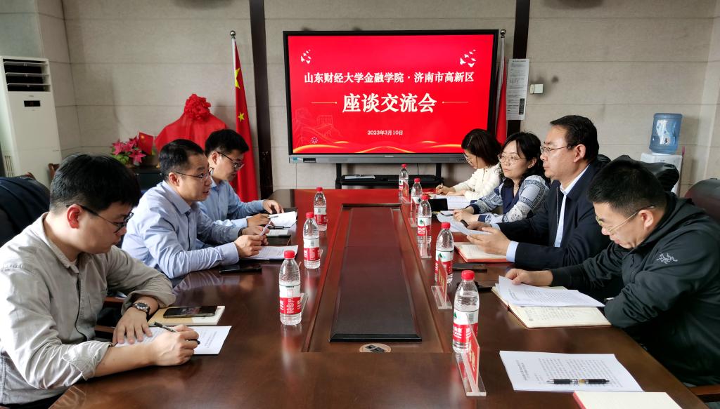 3月10日,我院与济南市高新区科创金融服务专班在舜耕校区召开座谈会。科创金融服务专班负责人荆兆山,专班成员潘克彬、张旭,海角app 党委书记吴红文,副书记康亚通,副院长王倩,团委书记郭夕熙,党委组织员邵珠建参加了座谈会。