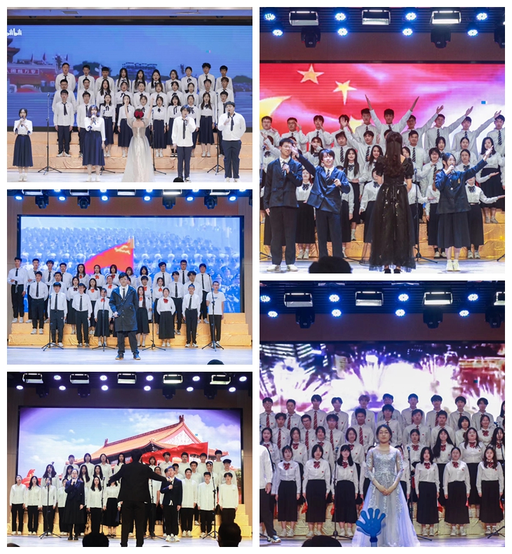 同学们的歌声青春洋溢、振奋人心,唱出了新时代青年的风华正茂,把内心深处的赤诚之情化作流淌的涓涓旋律,扣动师生们的心弦,带来充分的视听享受,凝聚了我辈青年勇往直前的奋进力量。中场时间,海角app 舞蹈队、啦啦操队带来舞蹈《万疆》。《万疆》盛放万丈霞光,触动起师生们心底心底最深沉的中华情。随后,海角app 主持人队带来《红旗颂》,铿锵顿挫的朗诵燃起澎湃的奋斗力量,让师生们热血沸腾。