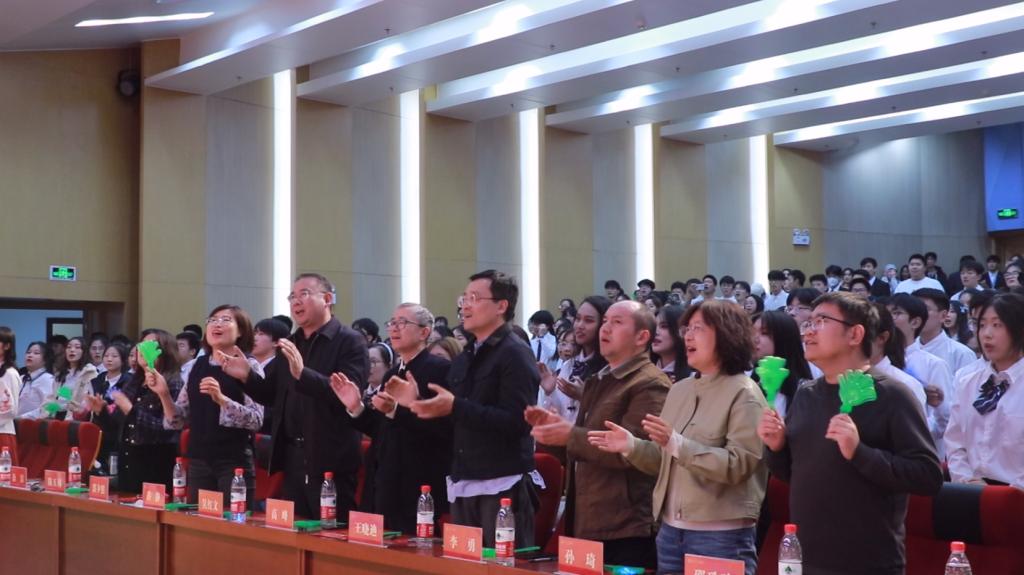 在同学们的精彩表演结束之后,2022级辅导员陈玉林、王蕴玮老师为师生们带来一首《百年风华》。歌曲流畅悠扬,歌声深情流露,深沉地表达了对党与祖国的赞美和爱戴之情,在师生们雷鸣般的掌声中将现场气氛推向高潮。活动最后,在热情洋溢的曲调中,全体师生一起起立,齐声高唱《雷锋》。本次合唱比赛在凝聚着奋发向上力量的全场大合唱中圆满结束。