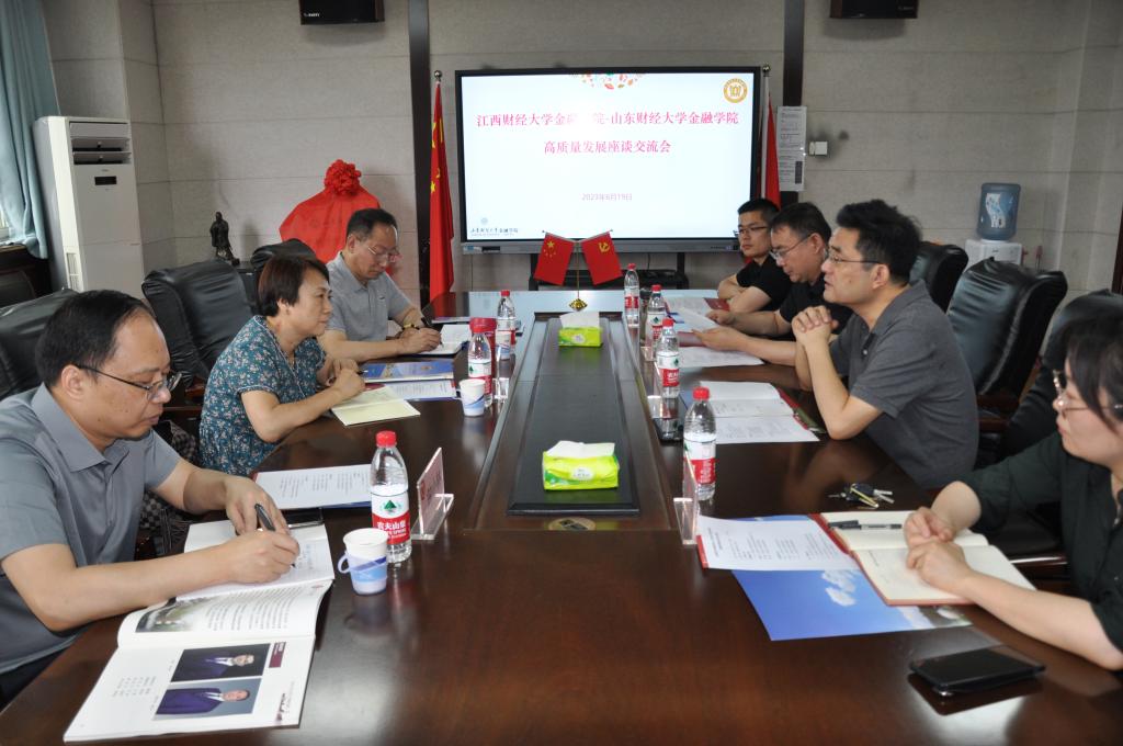 6月19日上午,江西财经大学海角app 党委书记王琪、科技金融研究中心主任钱建豪、副院长钟小林来我院访问。我院党委书记吴红文、院长彭红枫、副院长王营、王倩参加了座谈交流。