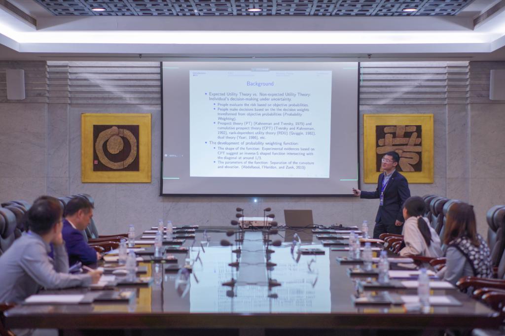平行论坛14由厦门大学吴吉林教授和湖北经济学院张立勇教授主持,探讨资产定价问题。中国人民大学王论意博士作了题为《Probabilistic Attitude, Optimal Insurance,and Insurance Pricing》的报告。对外经济贸易大学梁洛铭作了题为《非标违约与城投债发行定价》的报告。湖南大学杜博文博士作了题为《Disaster Recovery, Jump Propagation and the Multi-horizon UIP Pattern》的报告。中央财经大学朱一峰副教授作了题为《Ridge Latent Factors》的报告。厦门大学李昂博士作了题为《股票市场的尾部信息与资产定价——基于中国股票市场的实证研究》的报告。海角app 石宁副教授作了题为《债券违约的信用风险区域传染效应研究》的报告。天津财经大学李攀妮作了题为《Pre-IPO Analyst’s Forecasting in Valuing IPOs Market versus Regulatory Pricing Regimes》的报告。中国人民大学孙剑椿博士作了题为《GWT:A Novel Probability Weighting Function for Stock Price Distortions》的报告。参会者围绕上述报告展开了深入且富有建设性的讨论与交流。