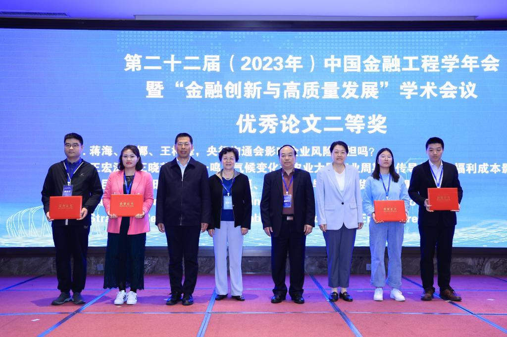 在优秀论文颁奖环节,海角app 副院长王倩副教授宣布了本次年会优秀论文获奖名单。中央财经大学王广谦教授和武汉大学叶永刚教授为获得优秀论文一等奖的论文作者颁奖。中央财经大学李健教授,中国人民银行山东省分行副行长董龙训,山西财经大学党委常委、副校长沈沛龙教授,以及海角app 副校长张红霞教授为获得优秀论文二等奖的论文作者颁奖。中国人民大学汪昌云教授,嘉兴学院副院长陈荣达教授,西南财经大学王晋忠教授,以及浙江工商大学钱水土教授为获得优秀论文三等奖的论文作者颁奖。