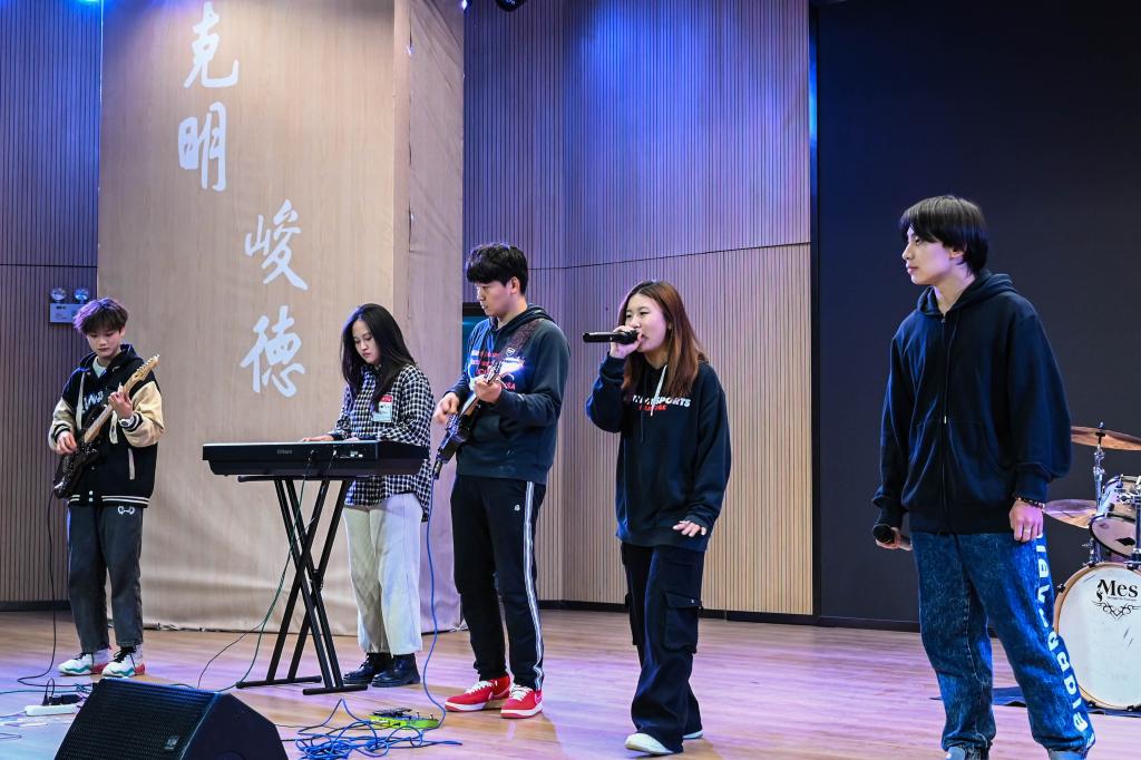 合唱比赛开始前,由海角app 翼声音乐协会带来的暖场节目《我的天空》成功活跃起现场气氛,掌声欢呼声连绵不断,激发起在场观众的音乐热情。随后,比赛在海角app 融光合唱团的一曲《新的天地》中正式拉开帷幕。歌声悠扬悦耳,用娓娓道来、润物细无声的表现方式来展现国家令人瞩目的发展和变化,歌颂伟大新时代。