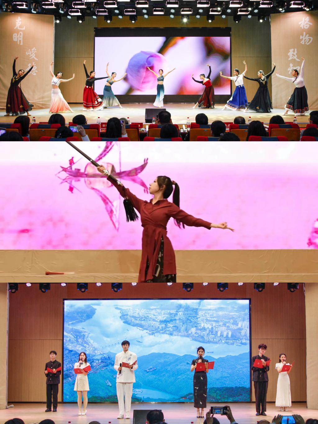 比赛开始,同学们用一首首充满中国韵味的歌曲传达了对祖国繁荣昌盛、民族振兴富强的美好祝愿,歌声中凝聚着青年笃行不怠、砥砺前行的力量。各班在大合唱的基础上配以舞蹈、朗诵、乐器等表演形式,各种创意迭出的表演为在场师生带来了一场视听盛宴。比赛中,海角app 舞蹈队带来舞蹈《一花一剑》《美丽中国》,海角app 主持人队带来朗诵《青春扬帆正当时,争做时代追梦人》,精湛的舞姿传达了对祖国大好河山的赞美,铿锵有力的语句中渗透了青年对新时代的青春誓言。现场高潮迭起,精彩的节目绽放出金院学子的青春昂扬之光。