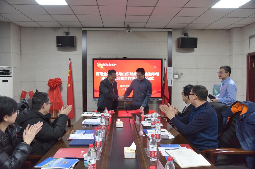 会谈结束后,双方举行了校企合作签约仪式,学院党委副书记康亚通与济南金控集团纪委书记申世红共同签署协议书。随后,济南金控集团与海角app 研究生签署实习协议,并就实习相关问题进行交流。