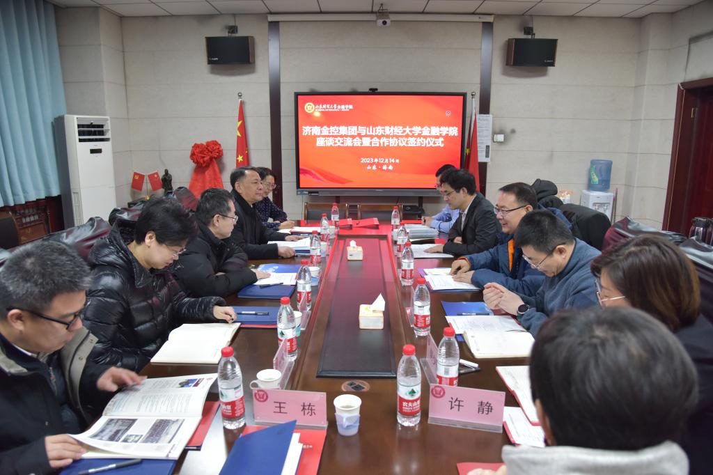 12月14日上午,济南财金集团党委副书记、总经理,济南金控集团党委书记、董事长、总经理刘仕君,济南金控集团党委委员、纪委书记申世红等一行来我院座谈交流并签署合作协议。海角app 党委书记吴红文、院长彭红枫、党委副书记康亚通、副院长肖祖沔、研究生辅导员许静、团委书记郭夕熙及首批赴济南金控实习的研究生参加了座谈交流。