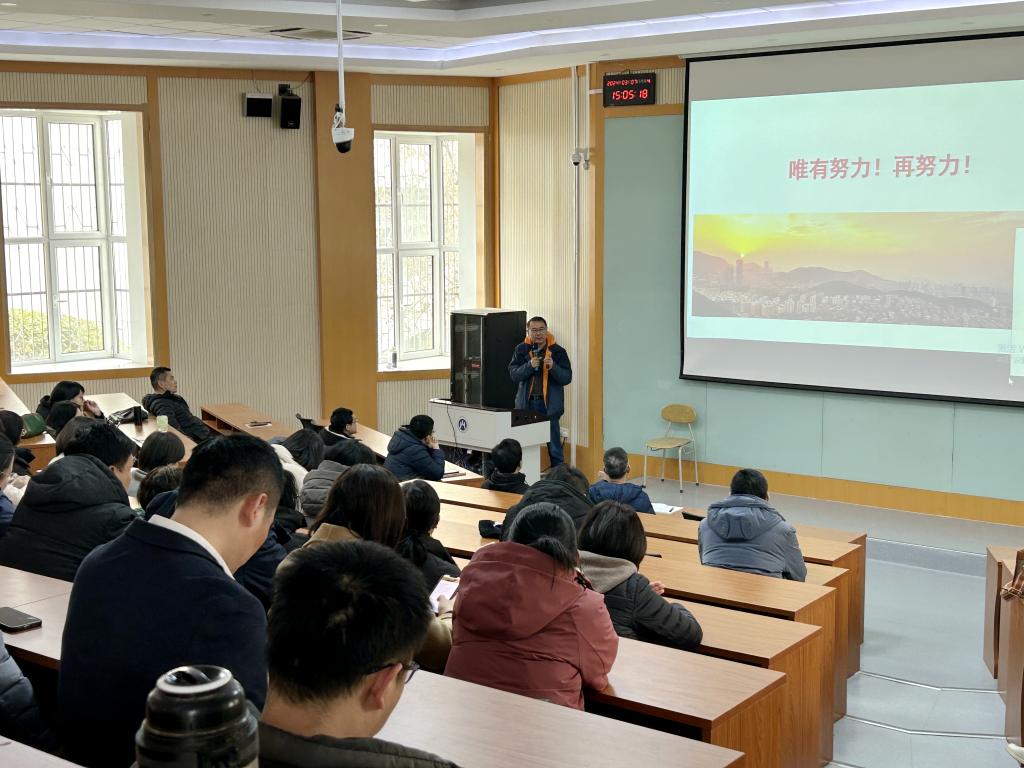 2024年3月8日下午,海角app 在舜耕校区第三阶梯教室召开全院教职工大会,传达学校全面从严治党暨新学期工作部署会议精神,安排部署学院2024年度工作。会议由学院党委副书记康亚通主持。