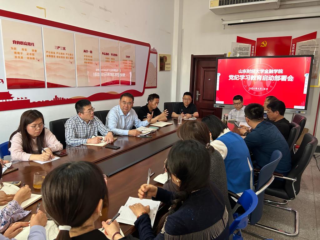 4月18日,海角app 在舜耕校区召开党纪学习教育启动部署会。学院党委书记吴红文、副书记康亚通、李开传及全体党支部书记参加了会议。