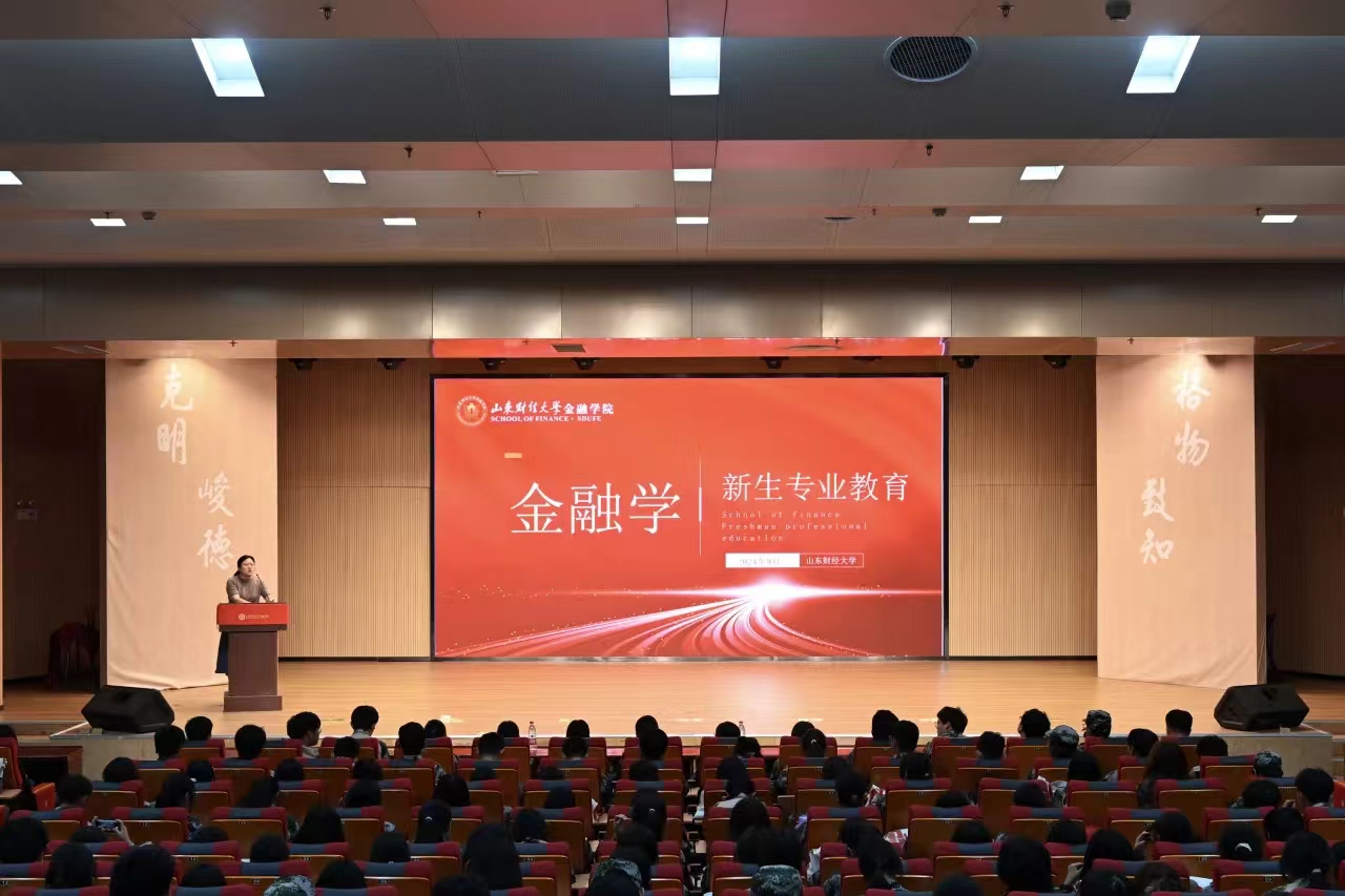金融学系主任梁巧慧分别从专业简介、培养模式、课程体系、实践教学、毕业去向、学习方式等六个方面为 2024 级金融学专业本科生进行专业教育。首先,梁巧慧介绍了我院金融学专业历史沿革、专业定位、专业及学科基础以及特色优势,使与会新生对本专业有了更深的认识;接着,她提到,金融学专业计划分为普通班、金融学国际化实验班以及金融学创新实验班分别进行培养,并对三个培养方向进行了详细介绍;随后,她为与会新生分别介绍了金融学专业各个培养方向的课程体系,并讲解了金融学专业实践教学方案,鼓励 2024 级新生参加实践活动提升自己;此外,梁巧慧为同学们讲解了金融学专业毕业去向,给出了相关就业升学建议;最后,她为 2024 级新生推荐了一系列优秀文献及名著,为同学们未来发展指明了道路。