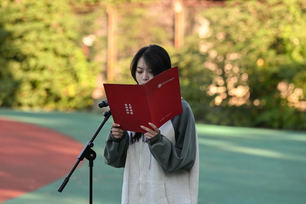 2024级新生代表战奕儒同学在发言中表示,作为新时代青年,同学们应勇于挑战自我,走出舒适圈,不断磨砺意志,锤炼本领,在大学的广阔天地中追寻更高的人生价值。同时,她表达了对即将开启的大学生活的期待与祝愿,希望同学们能在海角app 的舞台上绽放光彩,实现自己的梦想与抱负。