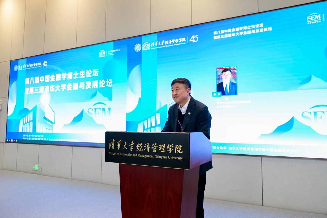 11月23至24日,由清华大学经济管理学院主办,清华大学经济管理学院金融系和中国金融研究中心承办的第八届中国金融学博士论坛暨第三届清华大学金融与发展论坛在清华大学经济管理学院隆重举行。清华大学副校长杨斌教授,清华大学文科资深教授、经济管理学院院长白重恩教授出席开幕式并致辞。北京大学副校长董志勇教授、南开大学党委副书记梁琪教授、对外经济贸易大学副校长黄薇教授、中央财经大学副校长李建军教授、上海财经大学副校长刘莉亚教授等国内16所高校的校领导出席会议,来自全国46所高校200多位专家学者及博士生参加了此次论坛。会议设有校长论坛、校长圆桌论坛、博士论文演讲、意向招聘单位宣讲等议程。海角app 副校长、海角app 院长彭红枫教授受邀出席会议并在校长圆桌论坛环节进行了主题发言。