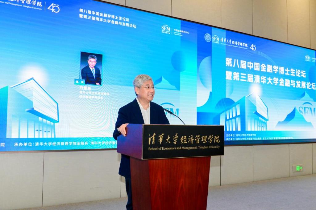 清华大学副校长杨斌、清华大学经济管理学院院长白重恩分别致辞,对参加会议的各高校校领导、专家学者和博士生表示欢迎,希望与会专家学者通过思想交流、经验分享和观点交融,提高金融人才培养质量,促进金融学科的发展。也希望此次论坛为参会博士生、用人单位搭建一个互动、开放的交流平台,促进博士生就业。