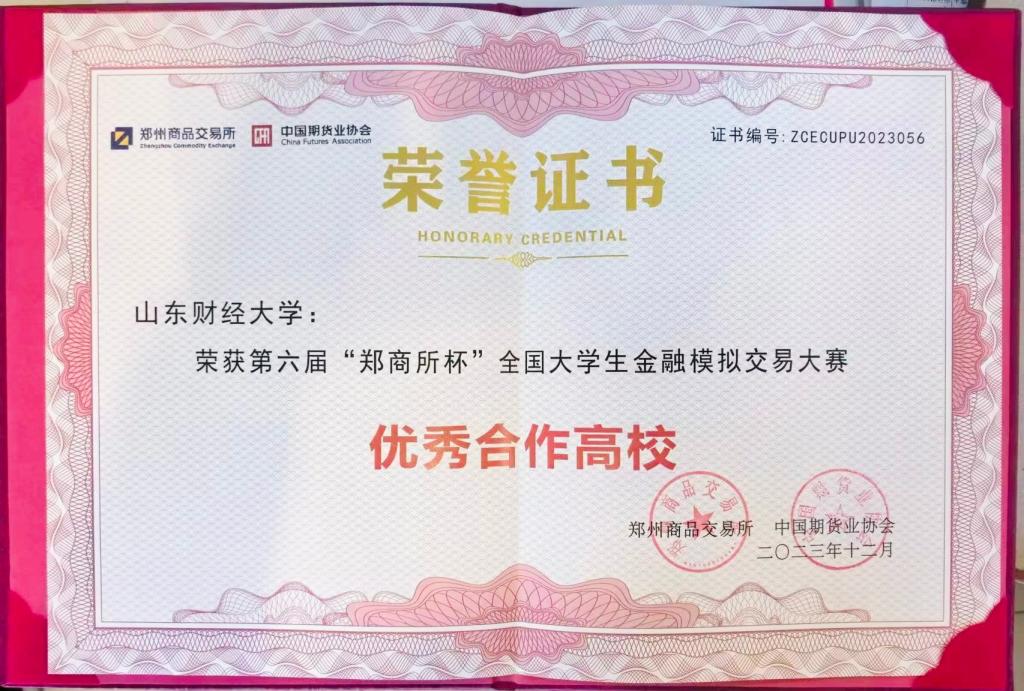 郑商所杯”全国大学生金融模拟交易大赛旨在为在校大学生提供理论知识应用的机会,推动期货投资者教育工作纳入国民教育体系,助力培养高素质青年人才,为期货市场培育具有模拟交易经验的复合型人才。海角app 学生张天烁、童奕哲、王雪获得鼓励奖,海角app 获评“优秀合作高校”。
