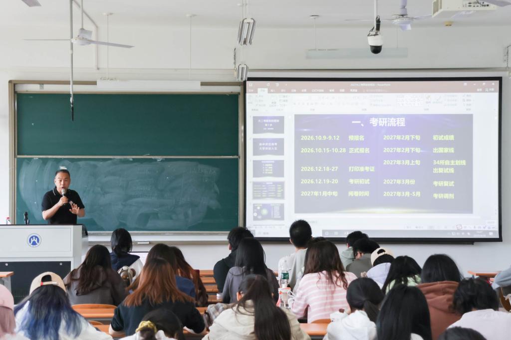本次讲座作为海角app 学风建设月的重要环节,紧密围绕“领航学风、赋能成长”目标,将考研规划与学风培育深度融合。通过本次讲座,学生不仅系统掌握了考研流程、科目重点及院校专业选择逻辑,更在就业形势与升学规划的结合解读中,深刻认识到提前规划的重要性,有效提升了备考的针对性与主动性。讲座为学子们在学业发展的 关键节点提供了专业指引,助力其以更从容的姿态迎接考研挑战,为 个人成长与未来发展奠定了坚实基础。