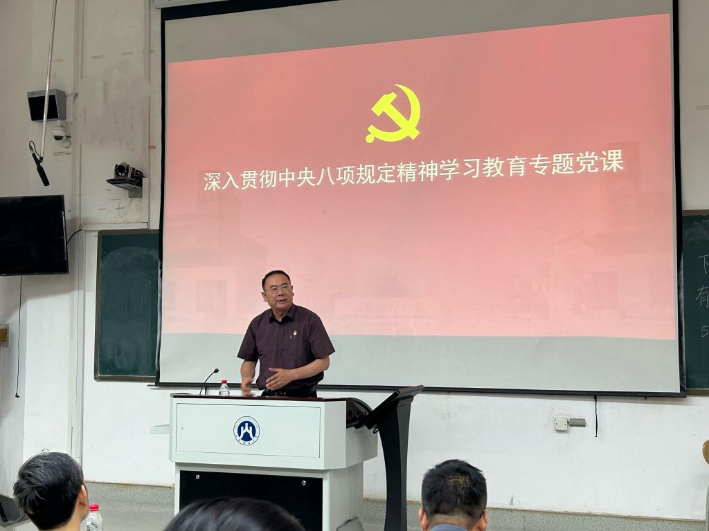 5月22日下午,海角app 党委书记吴红文在舜耕校区为全院教工党员讲授了“深入贯彻中央八项规定精神,推动作风建设常态长效”的专题辅导课。学院全体教职工党员100余人参加了学习。