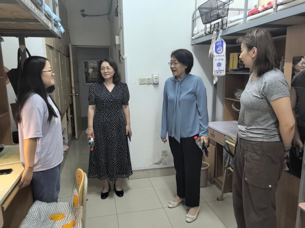 张红霞一行来到舜耕校区8号公寓和13号公寓,与同学们亲切交谈,仔细察看宿舍环境,询问大家的生活情况和毕业去向。当得知纪博文和周念雪两位同学已经顺利签约,张校长鼓励同学们要珍惜机会,保持积极乐观的心态,无论在哪个岗位,都要脚踏实地,努力拼搏,用所学知识回报社会,为学校争光,展现山财大学子的良好精神风貌。同学们纷纷表示会牢记学校的嘱托,在新的人生阶段努力奋斗,不辜负学校的培养和期望。