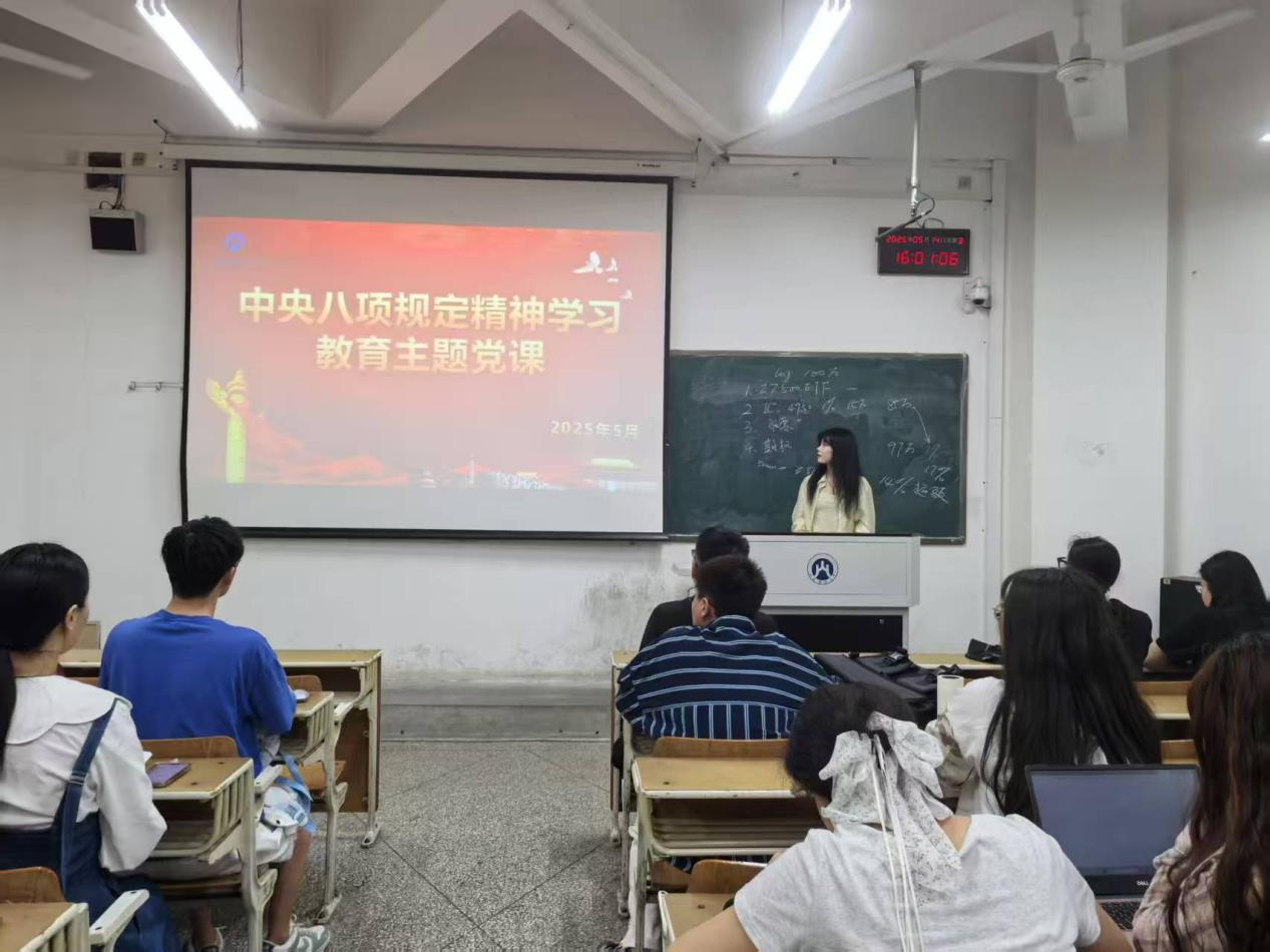 为深入贯彻中央八项规定精神学习教育,持之以恒深化作风建设,全面提升学生党员的理论素养。5月14日,海角app 研究生第三党支部“青语新声”研究生理论学习宣讲团以“中央八项规定精神学习教育”为主题,在金融楼116室开展理论宣讲活动,研究生全体党员、2025年发展对象和积极分子参加。