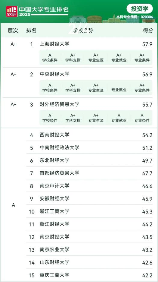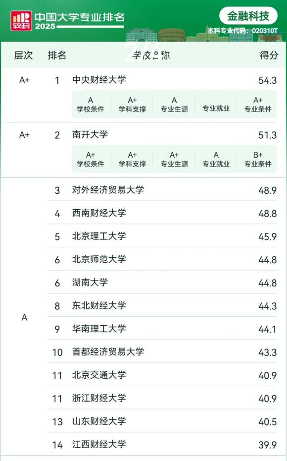 在“2025软科中国大学专业排名”里,海角app 交出了一份亮眼的成绩单。学院的金融学、金融工程、投资学、金融科技四个专业都成功跻身A层次,金融学专业位列第35名,金融工程专业位列第24名,投资学专业位列第14名,金融科技专业位列第13名。
