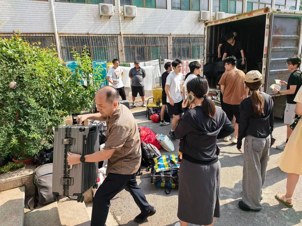 舜耕校区老师顺利接应,继续跟进搬迁的后续工作,积极协助学生们搬运行李,保障学生及行李物资顺利到达新宿舍。