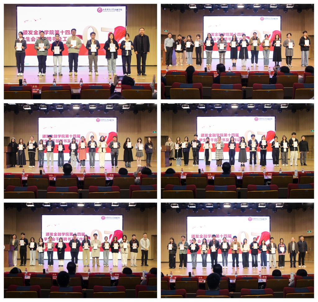 学院全体辅导员、第十三届学生会主席团成员及第十四届学生组织全体成员参加大会。
