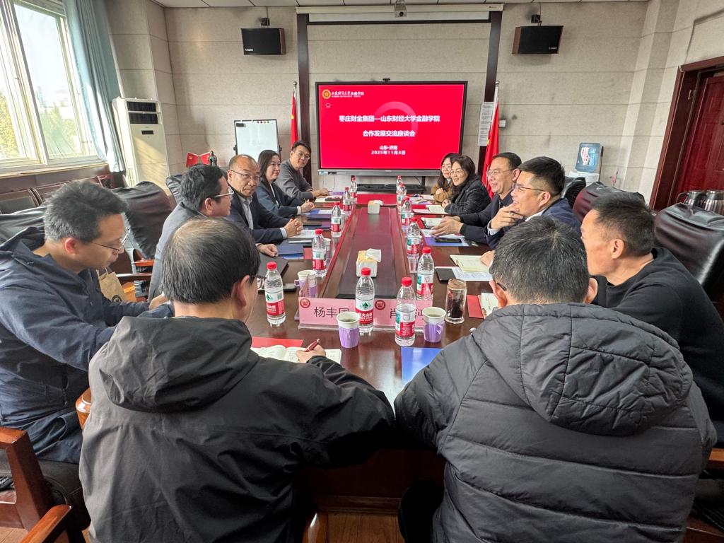 王营详细介绍了学院在金融工程、科技金融、绿色金融等前沿领域的研究成果,以及学院在服务山东省新旧动能转换、黄河流域生态保护等重大战略中发挥的智库作用。他表示,学院将把与枣庄财金集团的合作纳入重点发展规划,积极推动合作内容落地生根。