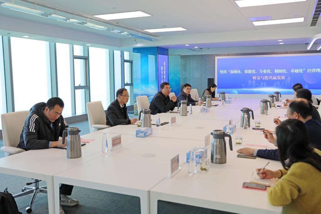 在日照市财金控股集团,海角app 校友、集团党委书记、董事长李玉亮,总经理李杰携主要业务板块负责人对海角app 一行的到来表示热烈欢迎。李玉亮介绍了日照财金控股集团作为日照市重要的国有资本投资运营平台,其业务涵盖产业投资、金融服务、园区运营、基础设施建设等多个维度,是推动当地产业升级和经济发展的重要引擎。他系统阐述了财金集团的发展历程、核心功能定位以及服务全市重大战略的实践路径,重点介绍了集团在支持科技创新、培育新兴产业、推动城市更新、助力乡村振兴等方面的战略布局和重点项目,集团相关部门负责人也分享了在项目遴选、投后管理、资本运作、国有资产保值增值等方面的专业见解和运作模式。