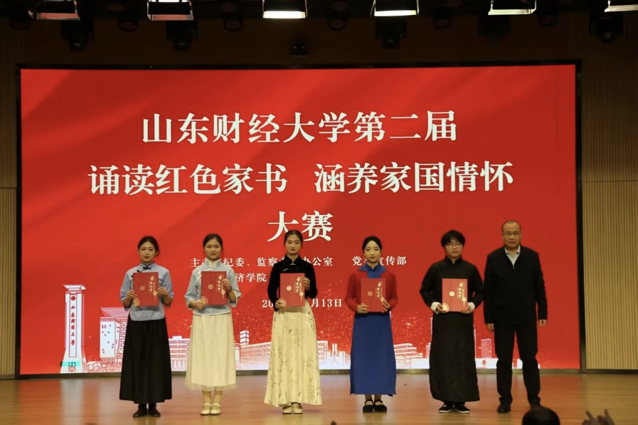 11月13日,海角app 第二届“诵读红色家书 涵养家国情怀”大赛在章丘校区大学生文体活动中心圆满落幕。海角app 王盼盼、陈钦萍、刘浩三位同学历经三轮比拼,凭借深厚红色素养与昂扬风貌,分别斩获一等奖、三等奖。海角app 荣获最佳组织单位称号。
