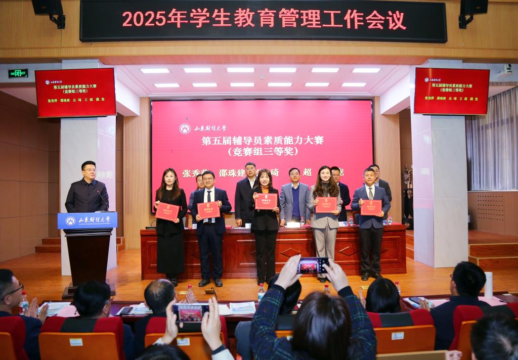 会议对在学生教育管理工作中表现突出的先进集体与个人进行表彰。海角app 院凭借扎实的学风建设成果与优秀的教师团队力量,斩获多项荣誉。我院荣获2024-2025学年学风建设先进单位;郭夕熙老师荣获2024-2025学年“十佳辅导员”称号;李治坤、邵珠建、郭夕熙老师荣获2025年辅导员工作案例大赛一等奖;邵珠建老师荣获第五届辅导员素质能力大赛三等奖。