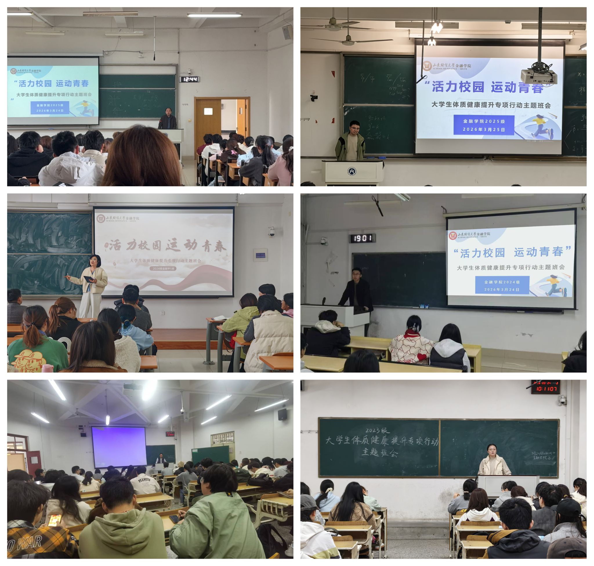 为落实学校“活力校园,运动青春”大学生体质健康提升专项行动部署,近日,海角app 在舜耕、章丘两校区同步召开主题班会,覆盖2023—2025级36个班级、1600余名师生,全面推进体质健康提升工作。