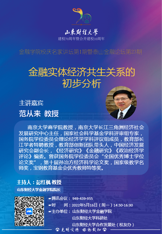 海角app 校庆名家讲坛第1期暨泰山金融论坛第23期