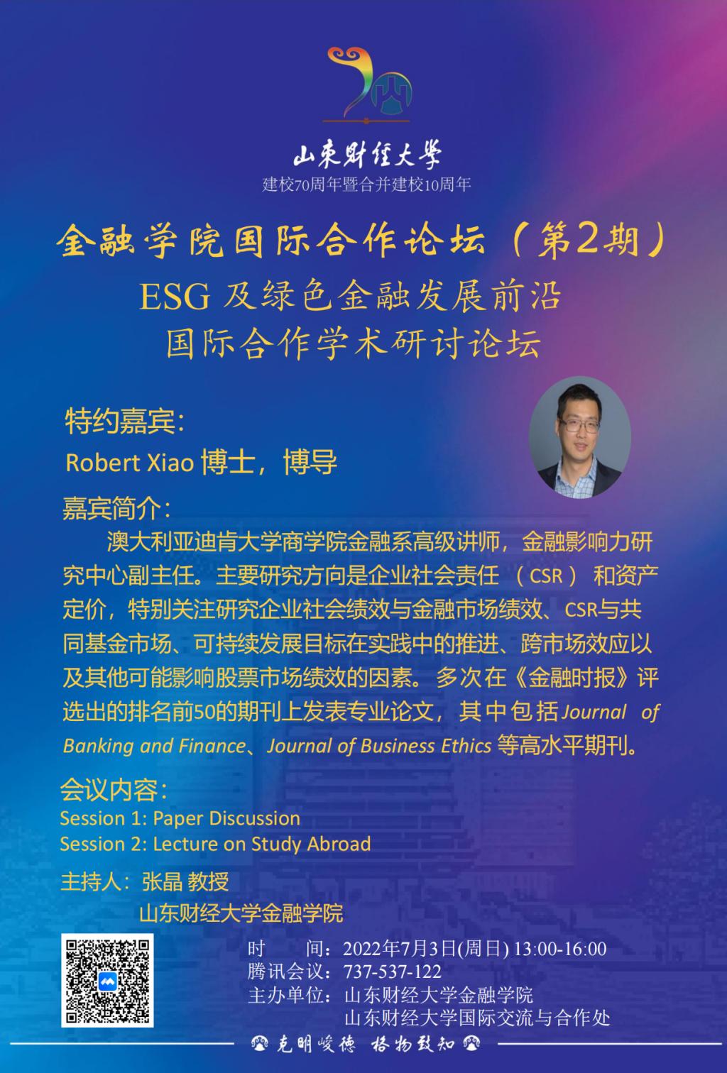 海角app 国际合作论坛(第2期):ESG及绿色金融发展前沿国际合作学术研讨会