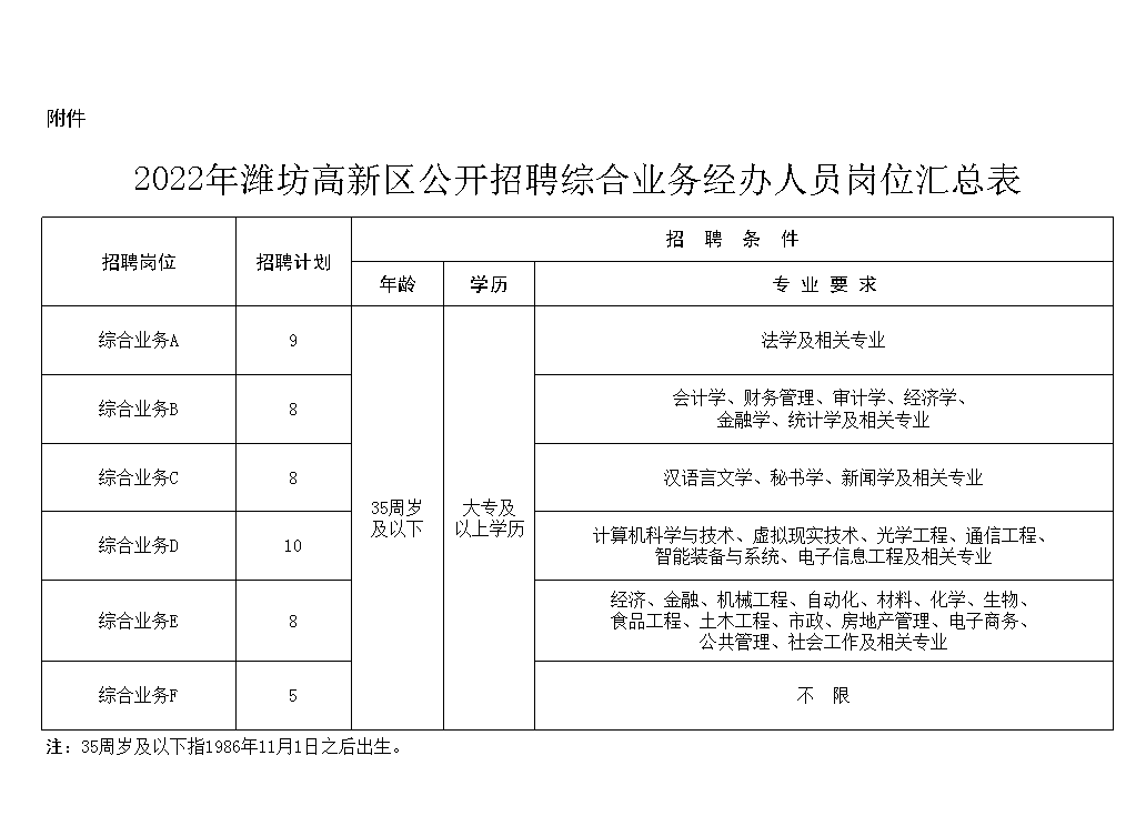 根据工作需要,潍坊高新区决定面向社会公开招聘部分综合业务经办人员,现将有关事项公告如下: