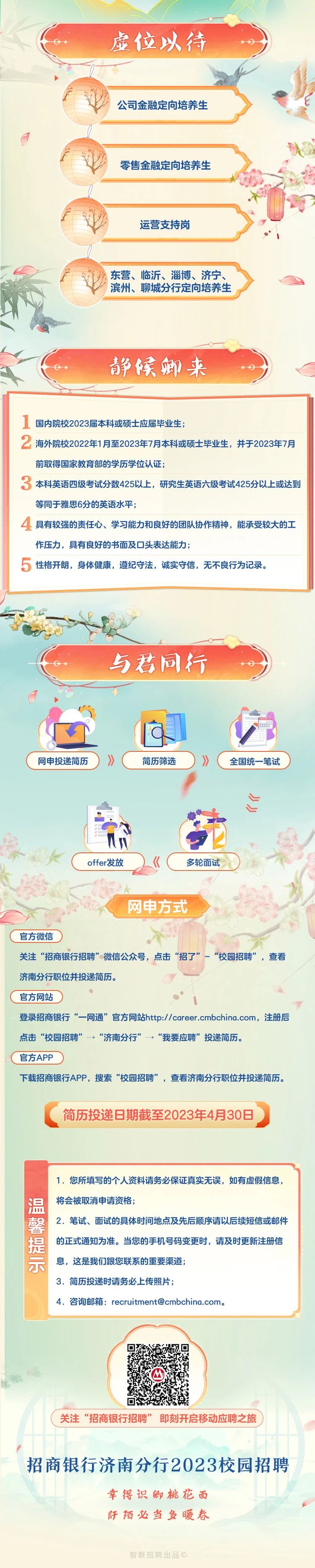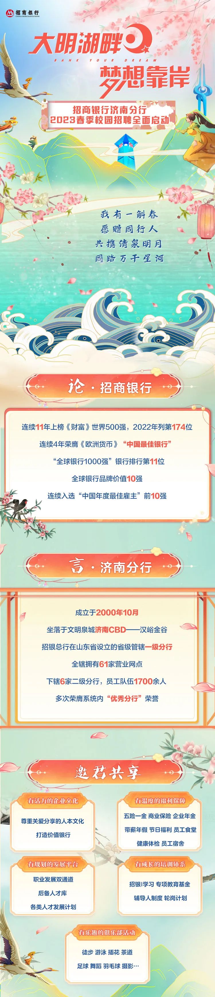 济南|“梦想靠岸”招商银行济南分行2023春季校园招聘