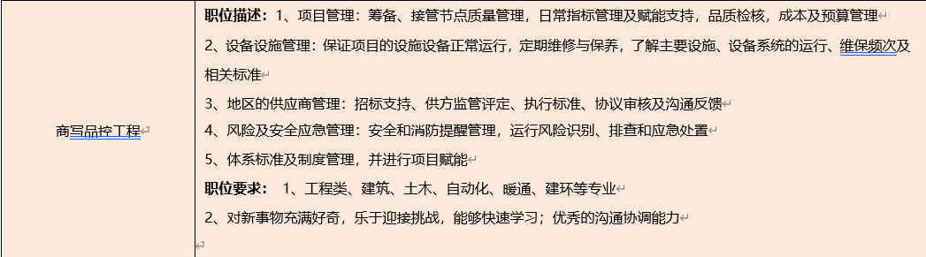 项目管理(社区运营方向)、项目管理(品控管理方向)、售场管理、商写客服