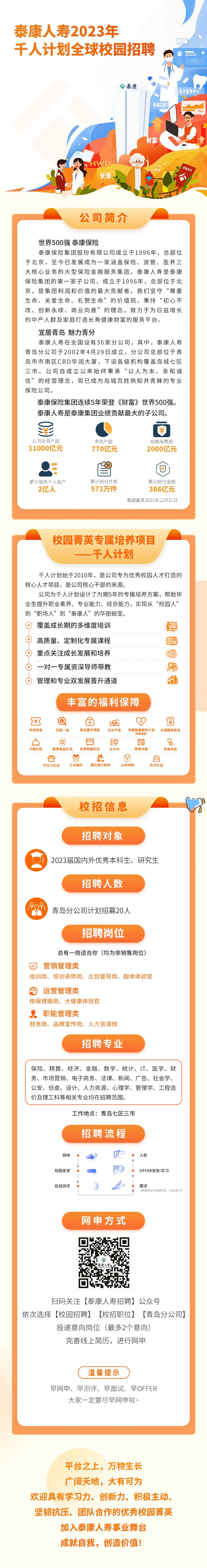 泰康人寿青岛分公司2023年校园招聘