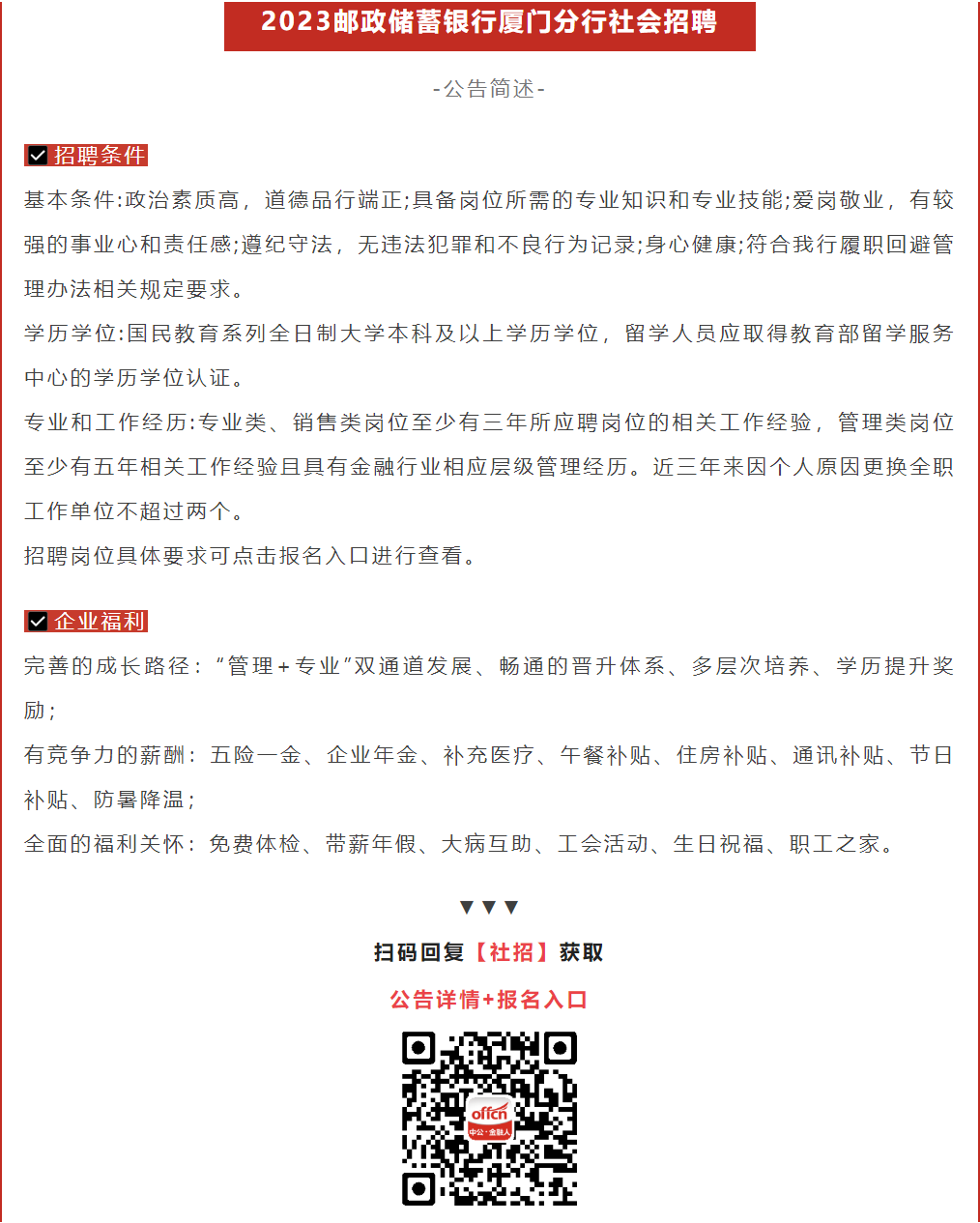 八险二金!2023邮储银行面向社会招聘若干人!待遇丰厚!