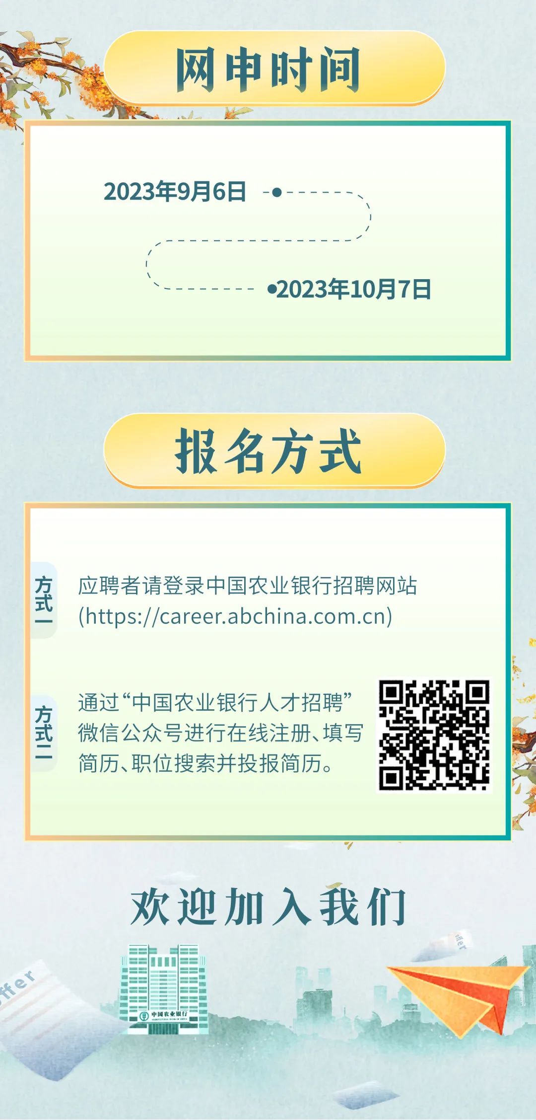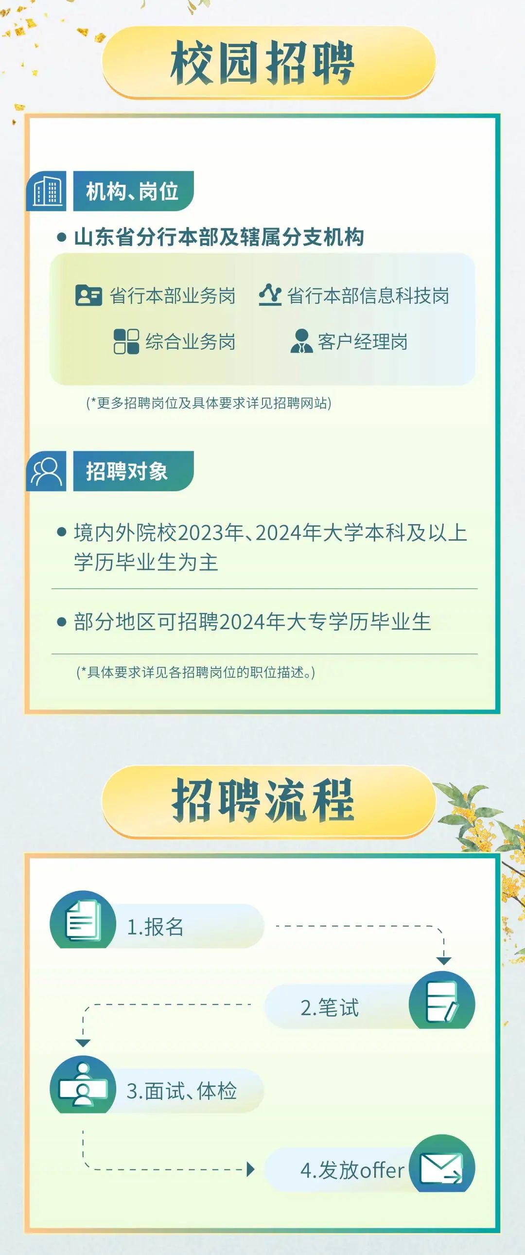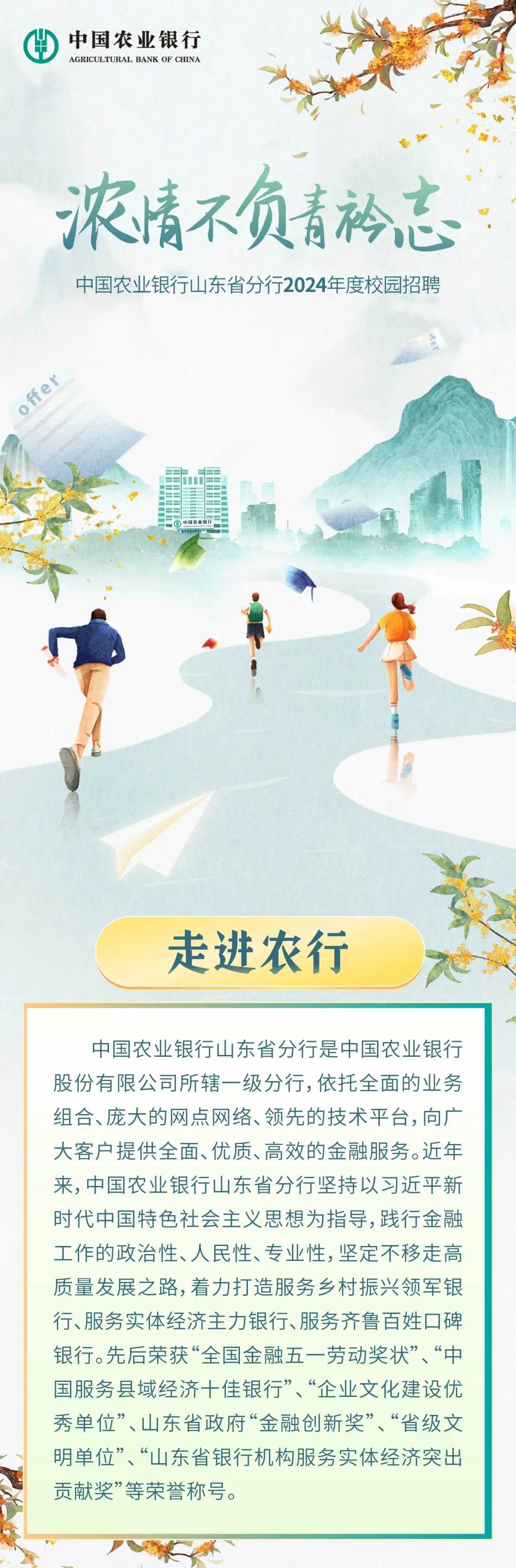 中国农业银行山东省分行2024年度校园招聘开始啦!
