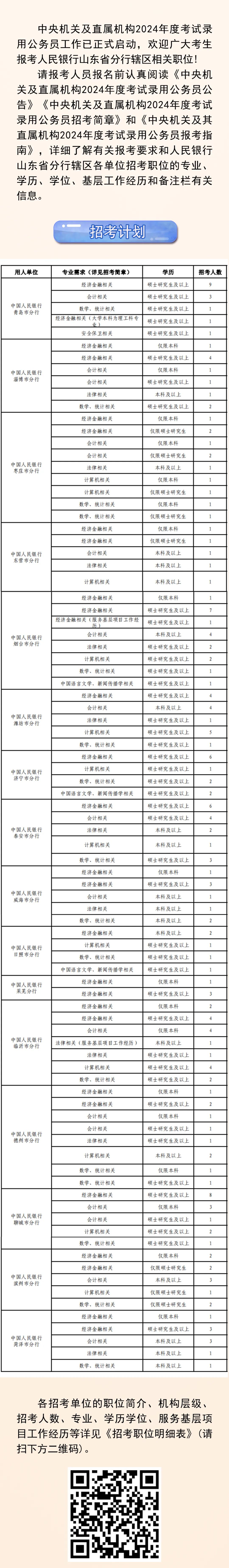 人民银行山东省分行辖区2024年度公务员招录报名火热进行中